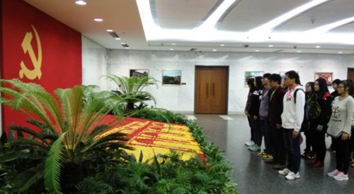 我院第十二期高级党校入党积极分子参观一大会址有感 为了进一步提高入党积极分子对党的了解,提高学员思想政治觉悟。 2014 年 11 月7日下午,学院党校组织第十二期高级党校学员前往中共一大会址纪念馆进行了参观学习,重温了当年那段历史,让全体学员对于党从建立、发展到成熟的历程有了更深一层的了解。进入馆内,学员们立刻被庄严的氛围所感染。党旗在鲜花的衬托下格外鲜红,感觉是那样的神圣和高尚,让大家发自内心地崇敬和激动。各小组学员自主排成一个整齐的队列在党旗下默默宣誓。之后学员们在一大会馆的党旗下合影留念,纪念这庄严而又神圣的一刻。