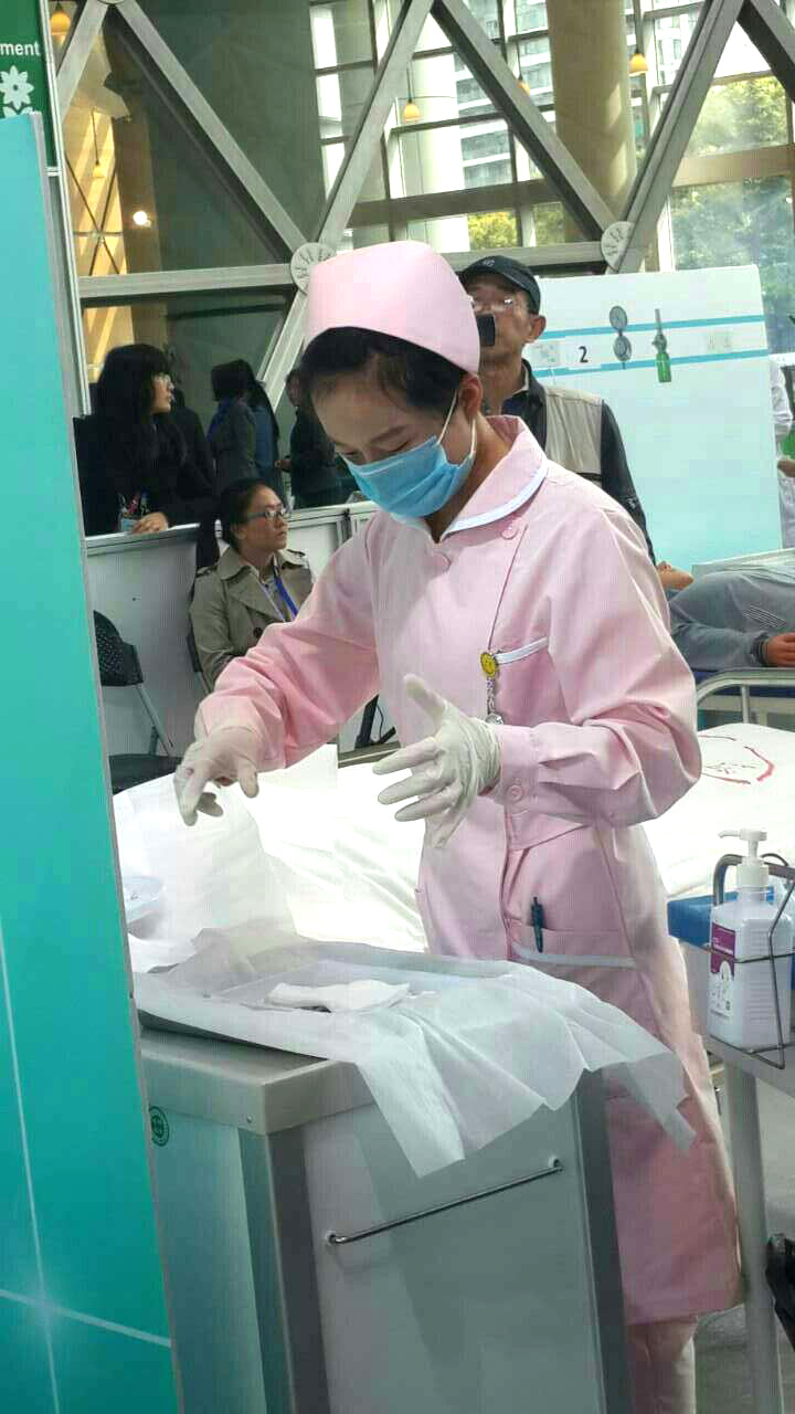自 2015 年 3 月初至 4 月初公共卫生护理学院的专业教师加班加点强化培训参赛学生的护理操作技能。 4 月 9 日来自 9 所院校的 27 名参赛学生在上海行健职业技术学院进行了理论知识考试。 4 月 10 日、 11 日在上海科技馆进行操作技术比赛。 4 月 11 日每个参赛院校挑选两名同学参加表演赛。比赛项目是 4项护理技术操作,包括头部外伤包扎技术、单人徒手心肺复苏技术、密闭式静脉输液技术、置胃管技术,限定时间是 28 分钟以内。
