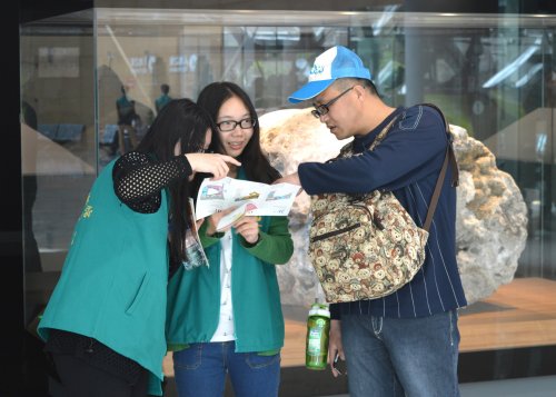 来自我院14级新闻班的胡玉倩的工作是为游客讲解怎样使用增强现实感APP,她在采访时说道:“虽然我每次都在重复做同样的工作,但是每当游客通过APP看到动物从博物馆走出去而惊呼雀跃时,内心深处非常的满足。”