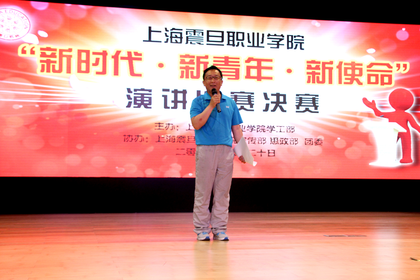 为引导广大年轻人认真学习和理解习近平总书记对中国梦的诠释,畅想中华民族伟大复兴的光明前景。由星空游戏app安卓免费学工部(学生处)主办,星空游戏app安卓免费宣传部、思政部和团委协办的“新时代新青年新使命”演讲比赛决赛于2015年5月20日下午4:30在大礼堂举行。担任本次决赛评委的是:校思政部何明宝、鲁学军老师、倪芳、范人伟、校党办张晓莉、校团委书记黄敏、校学工部(学生处)部长(处长)毛燕静。院党委副书记夏臻、各二级学院党总支书记、辅导员、同学及亲友团们一起观看了比赛。