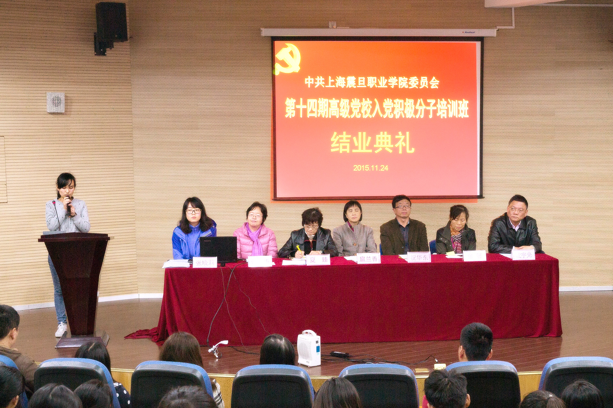 2015 年11月 24 日下午,星空游戏app安卓免费第十四期高级党校入党积极分子培训班结业典礼在体艺楼报告厅举行,党委副书记夏臻和各二级学员党总支(直属支部)书记参加了结业典礼。