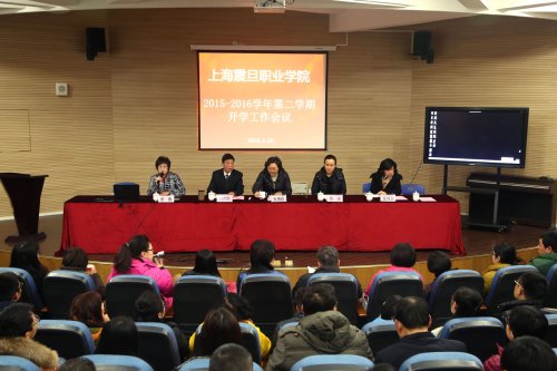 2月26日上午,我院2015—2016学年第二学期开学工作会议在体艺楼实验剧场隆重召开。震旦教育基金会理事长、管委会主任张惠莉、震旦职业学院董事长张沈、院长陈力华、党委副书记夏臻、副院长王纯玉以及全体专兼职教师、辅导员、各部处室管理人员及教辅人员参加了会议,会议由党委副书记夏臻主持。