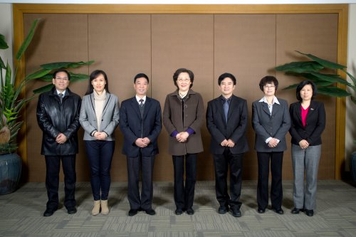 院长陈力华(左三)、副院长张惠莉(中)、副院长张沈(左二)、副院长王纯玉(右一)、