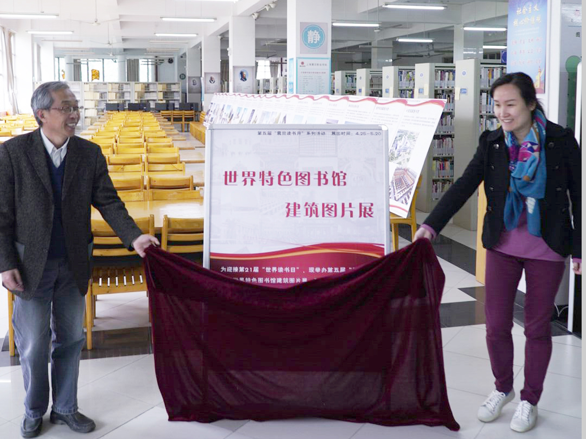 张健馆长首先对举办图片展的意义进行了介绍,通过展示世界上独具特色的20组图书馆建筑,反映出各个地区对阅读文化的重视及图书馆建筑文化的发展,开拓读者眼界。在热烈的掌声中,张沈董事长与张健馆长共同为仪式揭牌。