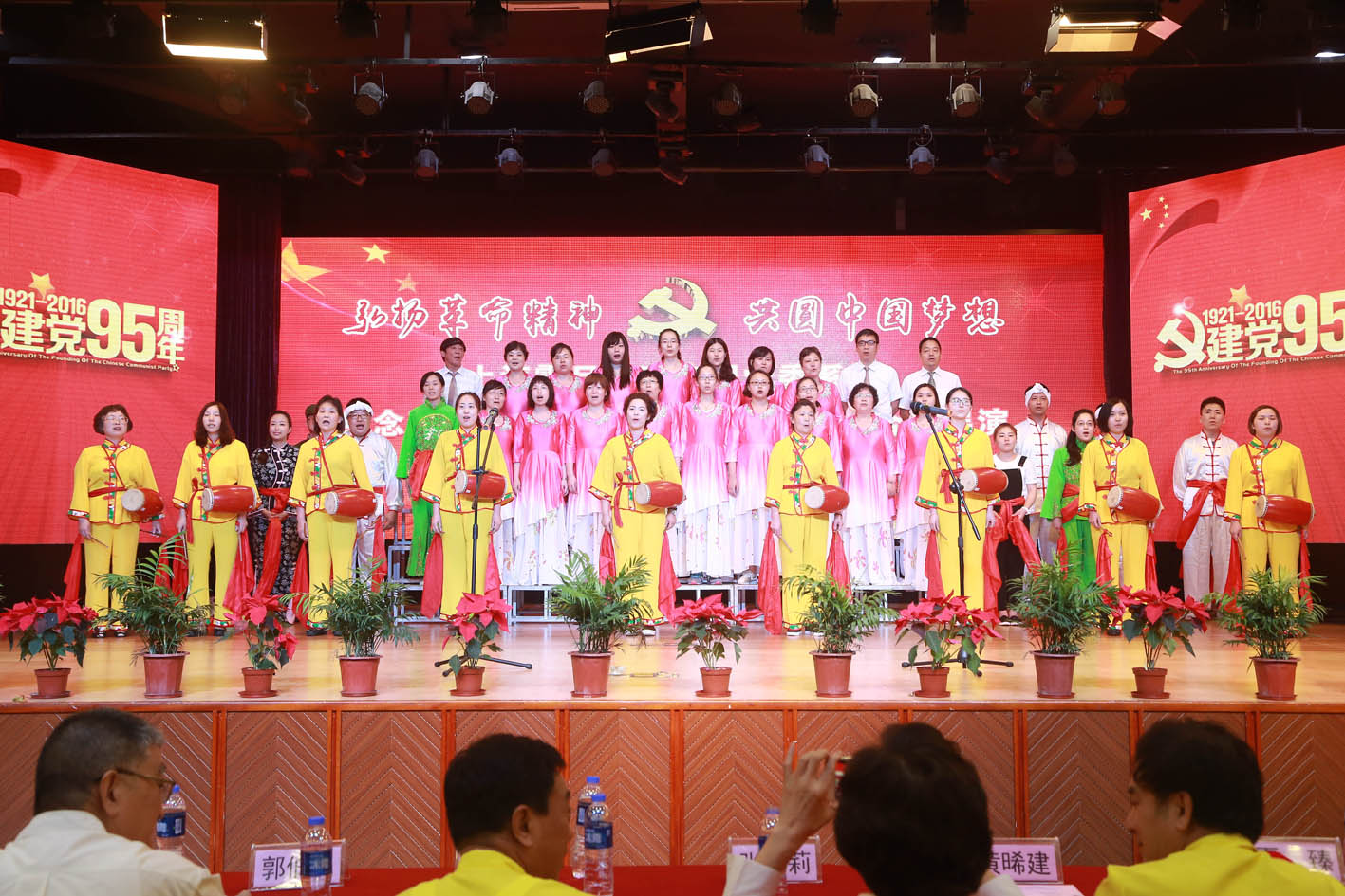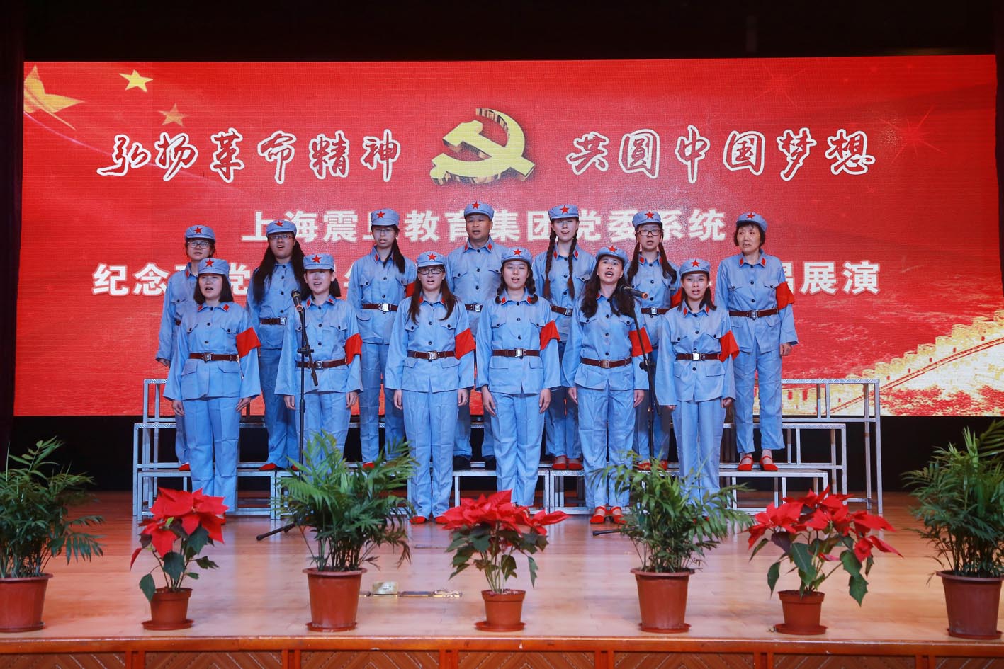 表彰大会在庄重的国际歌中结束,弘扬革命精神·共圆中国梦想”合唱展演活动开始。