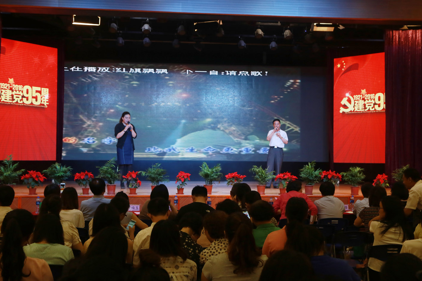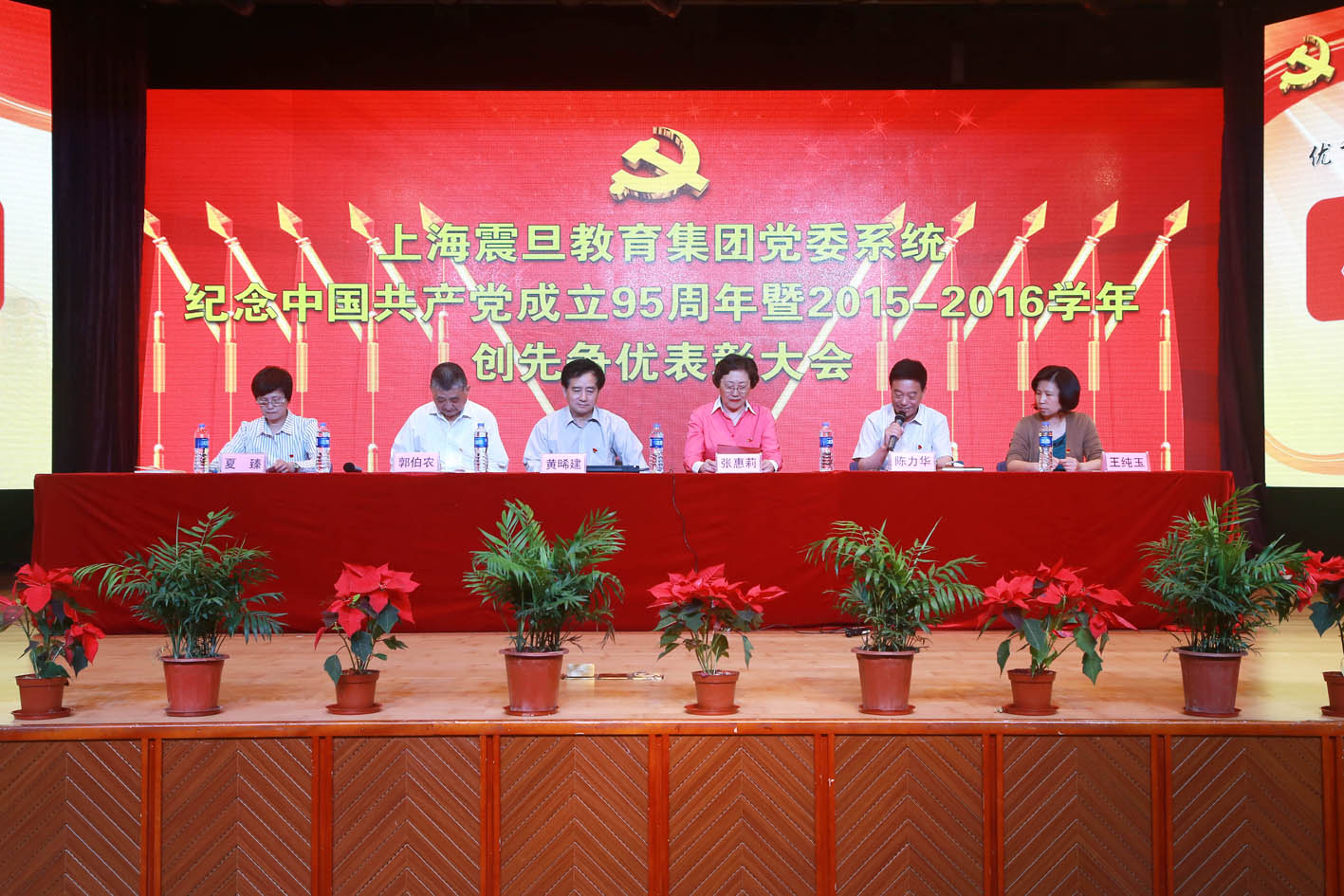 6月28日下午一点半,上海震旦教育集团党委系统纪念建党95周年暨2015—2016学年创先争优表彰大会在我院大礼堂隆重举行。震旦教育发展基金会理事长张惠莉、震旦教育集团董事长张沈、党委书记黄晞建、震旦学院院长陈力华、震旦校务委员会主任郭伯农、党委副书记夏臻、震旦学院副院长王纯玉出席会议,全体党员出席大会。会议由陈力华院长主持。会议在隆重的国歌声中拉开帷幕。