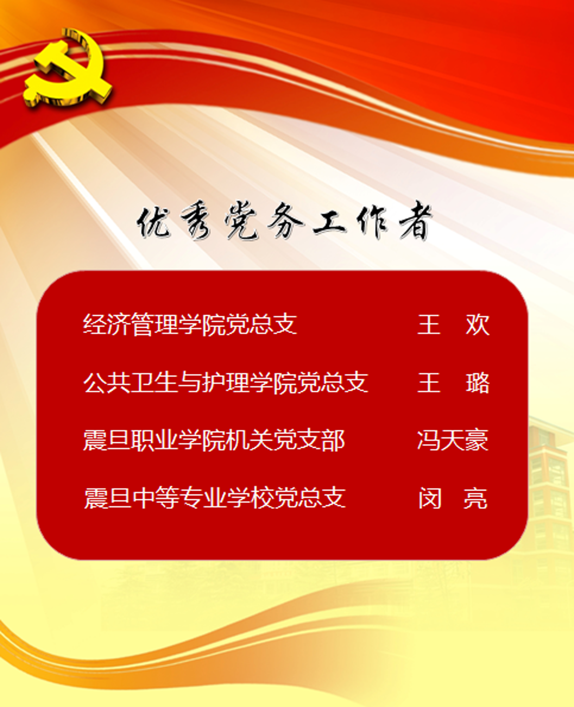 夏臻副书记宣读先进个人和集体的表彰名单