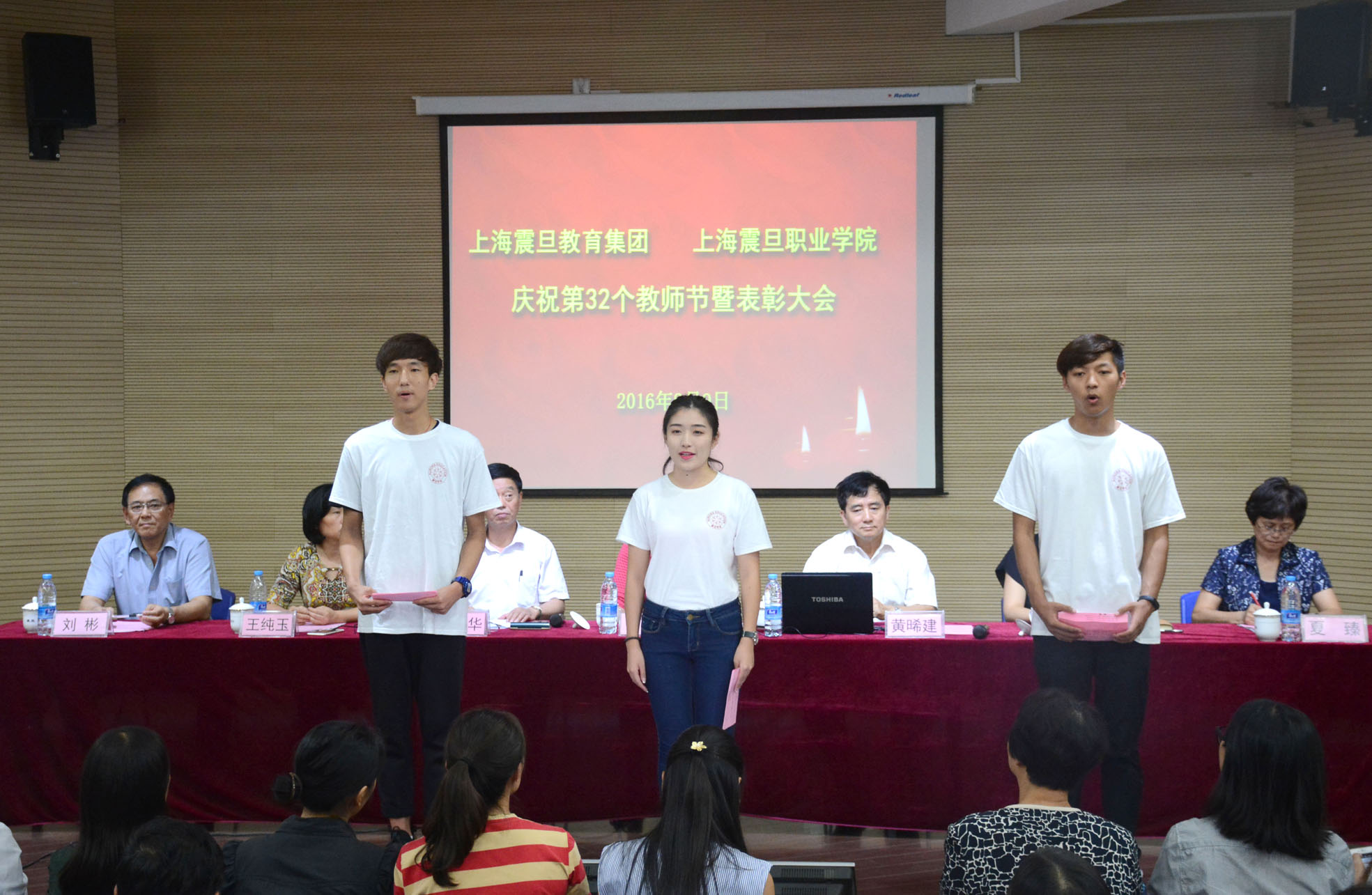 2016年9月9日,上海震旦教育集团、星空游戏app安卓免费隆重召开“庆祝第32个教师节暨表彰大会”。本次大会为视频会议,主会场设在震旦学院,集团其它下属8个院校园为分会场。震旦教育集团管委会主任张惠莉、震旦教育集团董事长张沈;震旦学院院长陈力华、党委书记黄晞建、副书记夏臻、副院长刘彬,震旦教育集团管委会副主任、震旦学院副院长王纯玉等领导同震旦学院全体教职工在主会场参加大会。陈力华院长主持大会。
