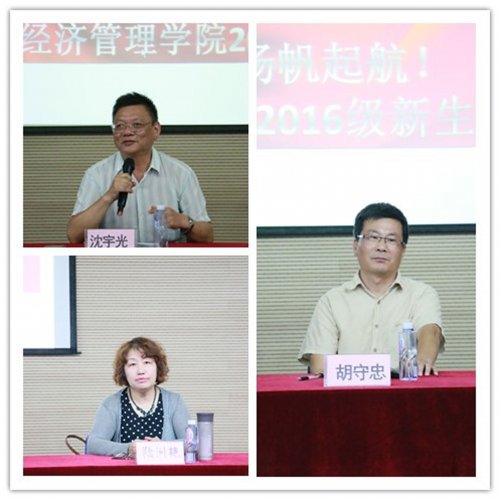 2016年9月13日下午,经济管理学院在震旦学院体艺楼实验剧场举行2016级新生开学典礼。胡守忠院长、各专业主任、全体教师、辅导员同2016级新生参加开学典礼。学院党总支副书记沈宇光老师主持会议。