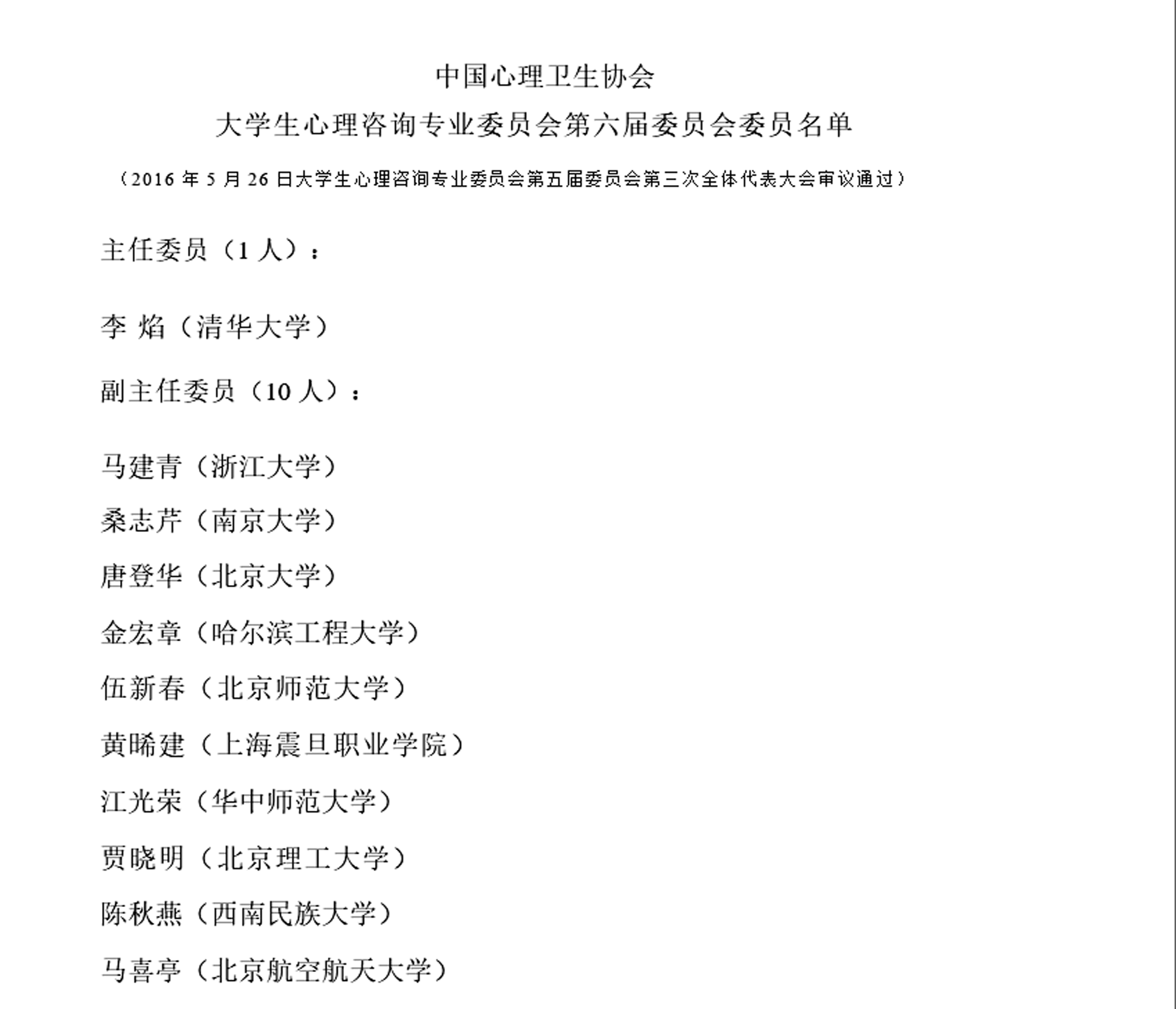根据中国心理卫生协会大学生心理咨询专业委员会通知,5月26日在西安交通大学召开了大学生心理咨询专业委员会第三次委员会议及会员代表大会进行了换届,来自全国188所高校的305名代表参会,会议审议通过并报中国心理卫生协会批准,我院党委书记、上海市学校心理健康教育名师黄晞建同志担任中国心理卫生协会大学生心理咨询专业委员会第六届委员会副主任委员。