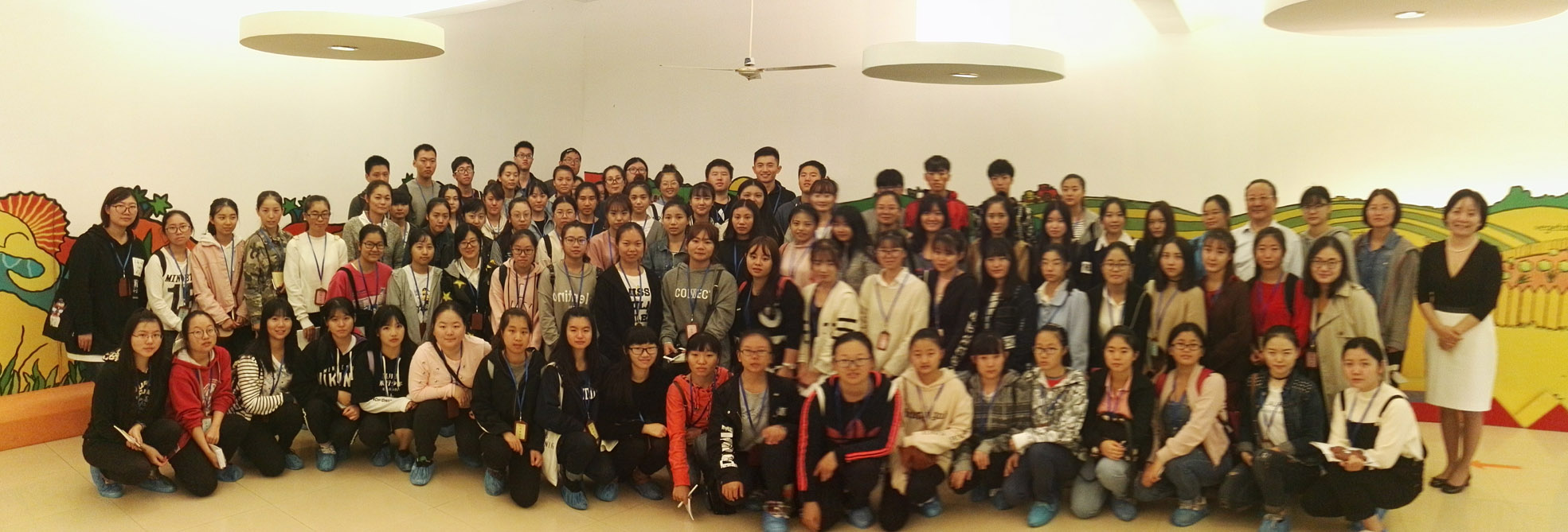 教学观摩结束后,学生分批在幼儿园老师的带领下在园内参观,老师们耐心地介绍了各教室的布置、教室功能的配备、学生游戏活动课的安排等,同学们也纷纷拿出手机拍照记录,对老师的介绍也做了详尽的记载。最后,夏园长和我院师生在园内合影留念。