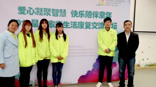 11月11日至12日,上海市儿童健康基金会、上海市精神卫生中心、上海星雨儿童康健院等单位联合主办,2016星儿家庭生活康复论坛在黄埔区公益新天地召开。在上海震旦教育发展基金会牵头下,我校团委组织12位志愿者前往论坛协助星雨儿童康健院开展关爱孤独症儿童的爱心活动。