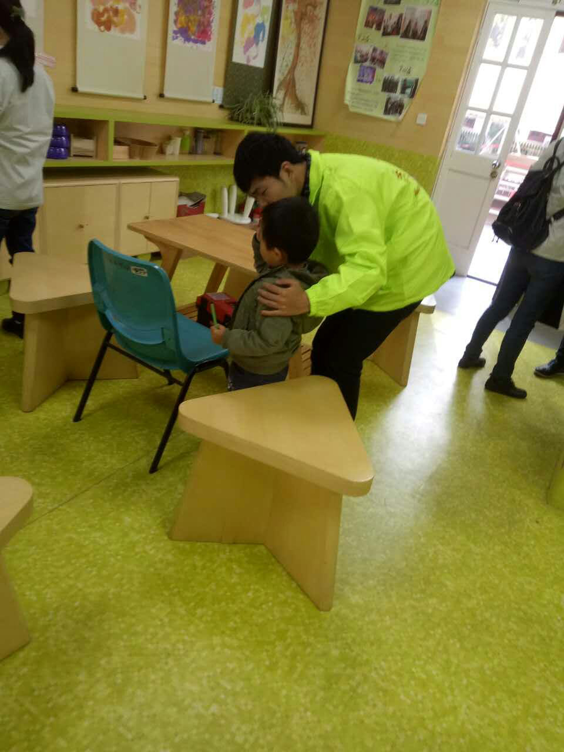 两天与孩子的相处,感触挺深也确实学到了很多。这些孩子,更需要我们的关爱。走进他们的世界确实很难,他们不会用成人的方式和我们交流,会对我们哭闹。我们需要更多的耐心和爱心去和他们沟通,慢慢走进他们的世界和他们打成一片。每天快结束的时候,他们来跟你抱抱亲亲,不舍得你走,很感动很温暖。