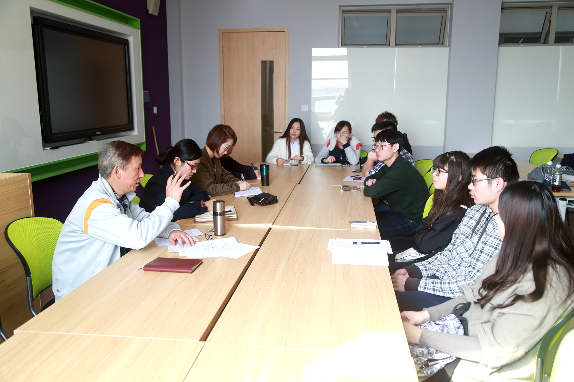 随后,同学们围绕教师授课、教学管理、教学条件等方面提出表达自己的想法与意见。学生普遍认为绝大多数老师授课态度端正、授课认真,授课效果良好,但个别教师在上课时也存在一些问题,如上课教学方法单一,缺少师生互动;课堂纪律管理不严格等。同时,同学们也就实训安排、后勤保障等方面提出希望改进之处。