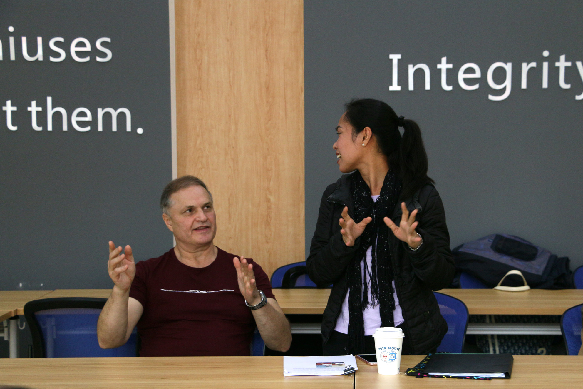 外教们在教学沙龙中展示了他们根据所在的教学环境所选择的多样化教学活动;中方英语教师们展示了针对职业院校学生外语学习中因材施教所取得的成果。另外,针对我院英语教学情况,中外教师在讲述各自课程目标与内容的同时,对不同的教学模式进行了对比分析,取长补短,以进一步提高教学质量。