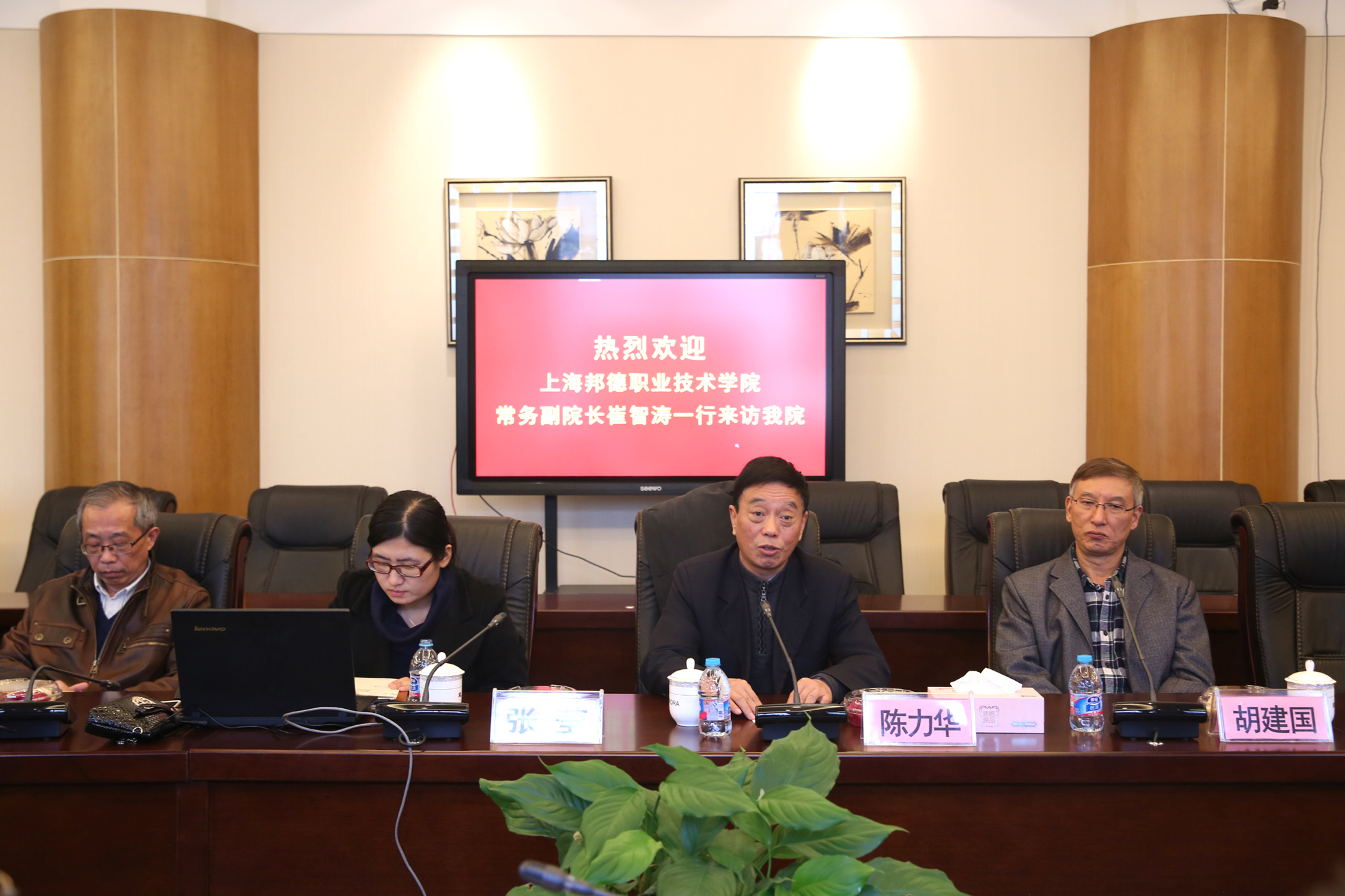 陈力华院长代表学院对上海邦德职业技术学院崔智涛副院长的到来表示热烈欢迎,并从我院历史沿革、办学规模、专业设置、培养层次等方面向客人介绍了具体情况。他指出:当前,我院正不断总结完善专业人才培养模式,并做出专业发展规划,希望以此次来访为契机,双方学院间加强交流,深化合作,共同实现新的发展。