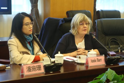 公共卫生与护理学院院长赵佩君教授首先介绍了公共卫生与护理学院的大致情况。主要就培养方案、办学规模、师资队伍、培养模式设计、2017年护理教学工作计划等方面做了阐释。AnnieBarr女士对实习期的长短、考取执照的难易程度、2017年资金使用情况进行了提问,并介绍了ABGI品牌所属项目和课程评估体系以及品牌的6C理念(Care、Compassion、Competence、Communication、Courage、Commitment)。
