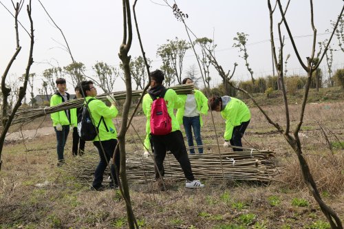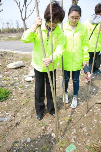 志愿者们在校团委书记曹晓莉老师的带领下,来到闻道园开始了本次的植树活动。随着温度的升高,晶莹的汗水渐渐爬上了志愿者的额头,但这丝毫不减大家劳动的热情。大家分工协作,手握工具,抗苗散苗,挥锹铲土,扶苗平土,每个环节都踏实认真,忙的热火朝天。经过一上午紧张的劳动,5000棵树苗整整齐齐地在闻道园“安家落户”,为河畔添上一片新绿,使宝山多一抹色彩。