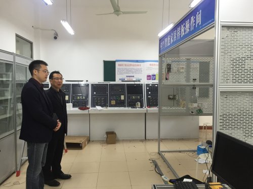 张沈董事长、姚黎明副院长陪同张冉先生参观物联网专业实训室:智能交通、食品溯源、智能家居、智能家居样板间、综合布线、物联网网络技术。姚黎明副院长详细介绍每个实训室的实践与教学功能。