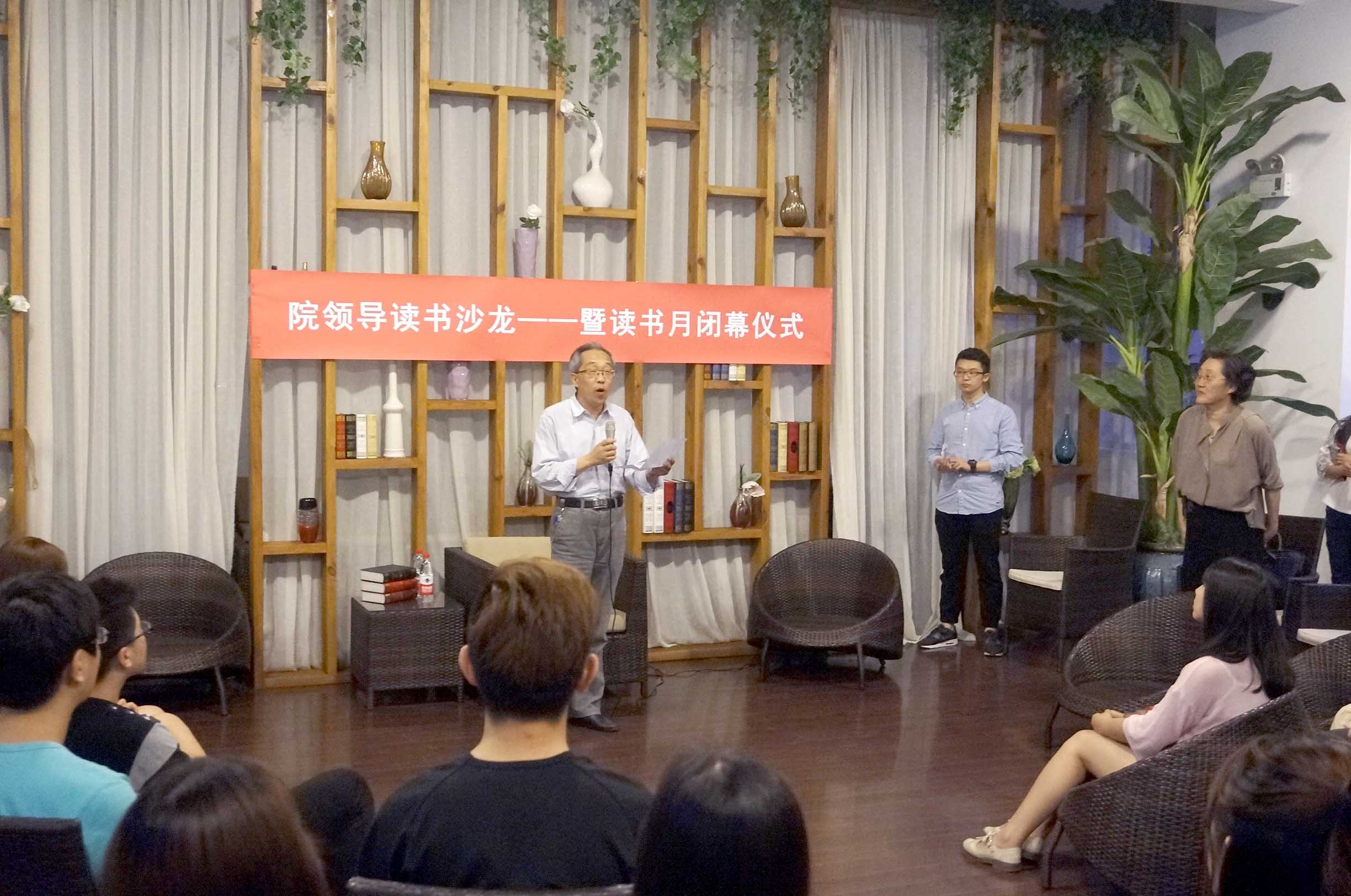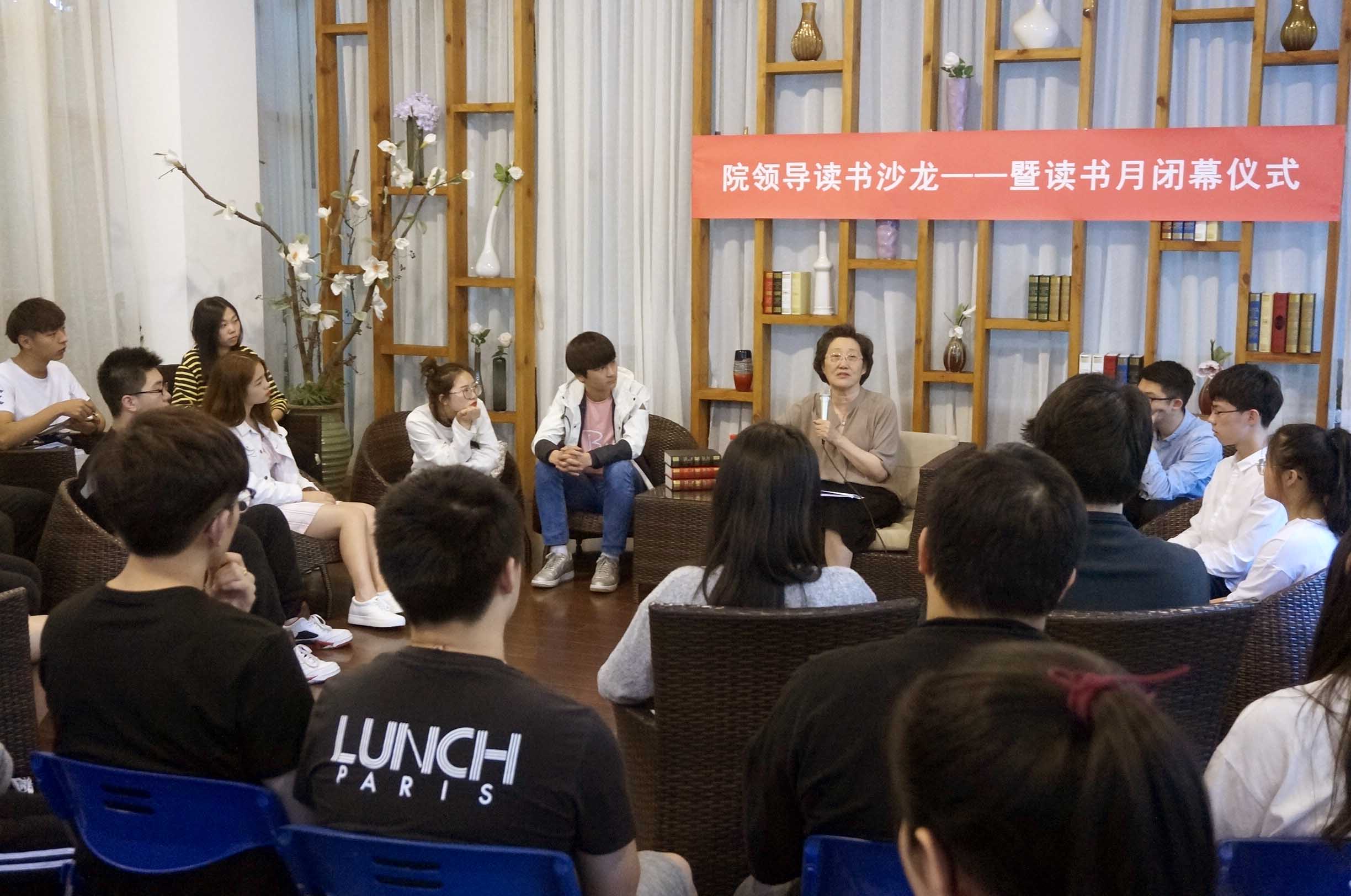 院领导读书沙龙——暨读书月闭幕仪式在体艺楼一楼茶座举行,图书馆邀请张惠莉理事长向同学们分享自己的读书心得和感悟,图书馆馆长张健、院长办公室主任张莉、团委书记曹晓莉、信息中心副主任金瑶以及三十余位学生代表出席了活动。