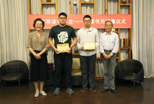 互动结束后,主持人介绍了第六届“震旦读书月”的活动:“三行情书”征文和“美在震旦”摄影比赛的情况,并宣布获奖名单,张惠莉理事长和其他领导给获奖同学颁发了奖状,并与所有获奖同学合影。