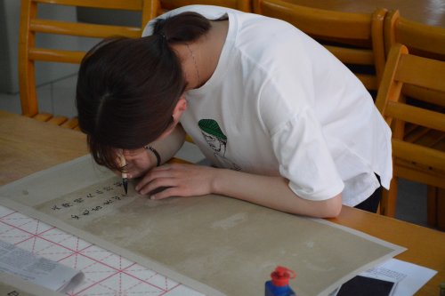 赛场上同学们即席挥毫,弘扬国粹文化。比赛中,同学们满怀激情,用心书写每一笔笔画、每一个汉字,尽其所能地展示自身书法的才能。