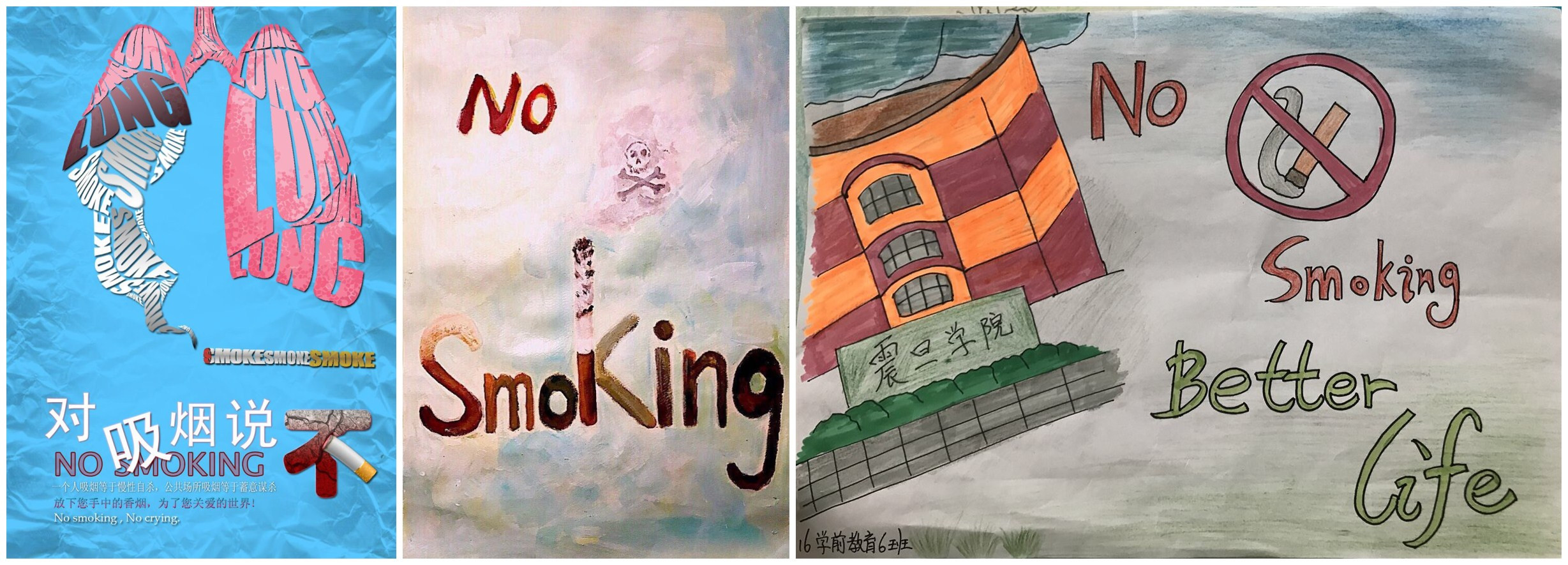 从4月25日至5月19日,在全校范围开展以禁烟为主题的海报设计和禁烟标志设计大赛,激发学生创造力与想象力的同时,让学生以校园主人翁的姿态,将校园禁烟与自身的健康相关联。各班级进行初选后,由各学院进行复选上报优秀的作品,通过网络投票和校评审小组评议,最终评选出5幅优秀禁烟海报和6幅优秀禁烟标志作品。