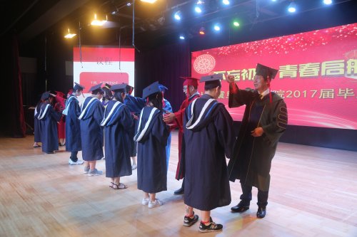 2017年6月19日上午9:00,我校2017届毕业典礼在大礼堂召开。名誉校长黄鼎业教授、震旦教育基金会理事长张惠莉、震旦教育集团董事长张沈、校党委书记黄晞建、校长陈力华、校党委副书记夏臻、副校长刘彬,以及各二级学院院长、党总支书记、任课教师及毕业班辅导员出席毕业典礼。部分上海市优秀毕业生家长代表受邀参加毕业典礼。