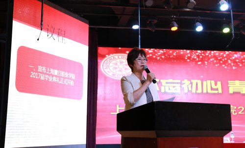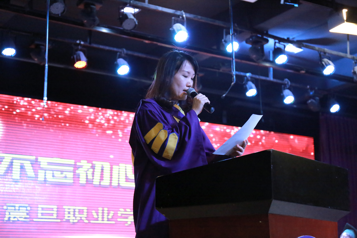 上海市优秀毕业生、预备党员朱书晴同学代表2017届毕业生代表发言。她首先分享了自己学习、实习、考取专升本的经历,并感恩学校的教育、感恩老师们的辛勤付出和体贴入微的关心指导,感恩父母的细致无私的爱和默默支持,感恩母校为学生提供成长的舞台。