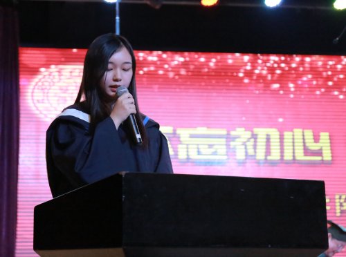 授证仪式后,在朱书晴同学的领誓下,全体毕业生们进行了毕业宣誓。全体毕业生在陈校长的带领下高唱《毕业歌》。在歌声中2017届毕业典礼顺利结束。