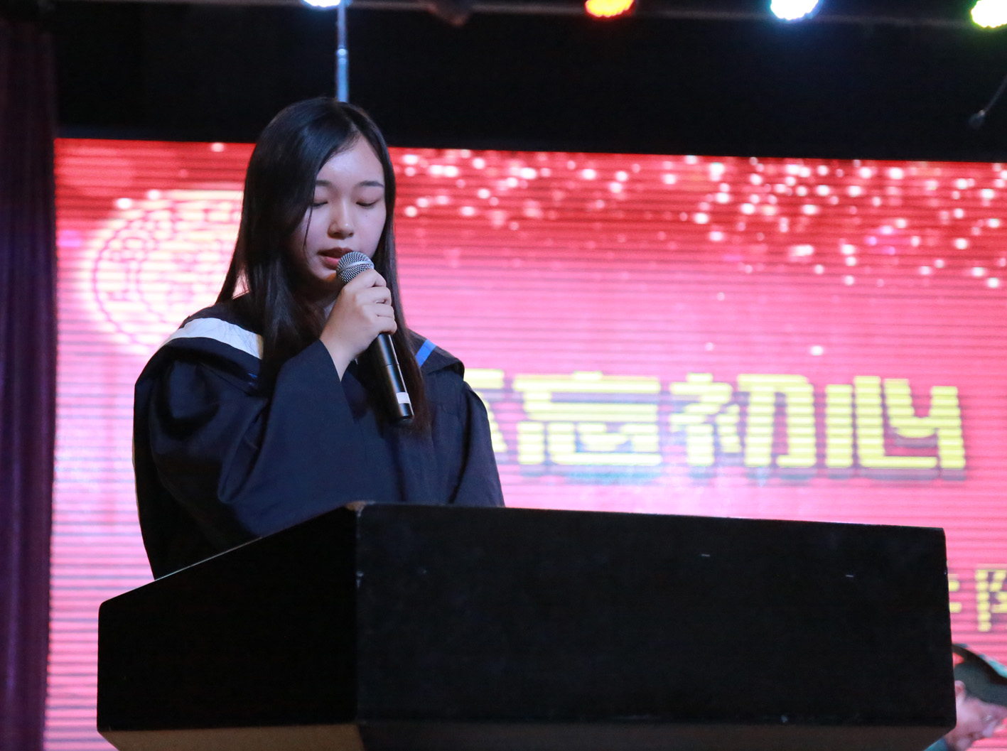 经济管理学院的王欢老师代表全体教师发言。她向同学们表示祝贺,同时希望毕业生要坚持学习,乐于奉献,心存感恩;克服消极情绪,放飞梦想、去开创美好的明天。