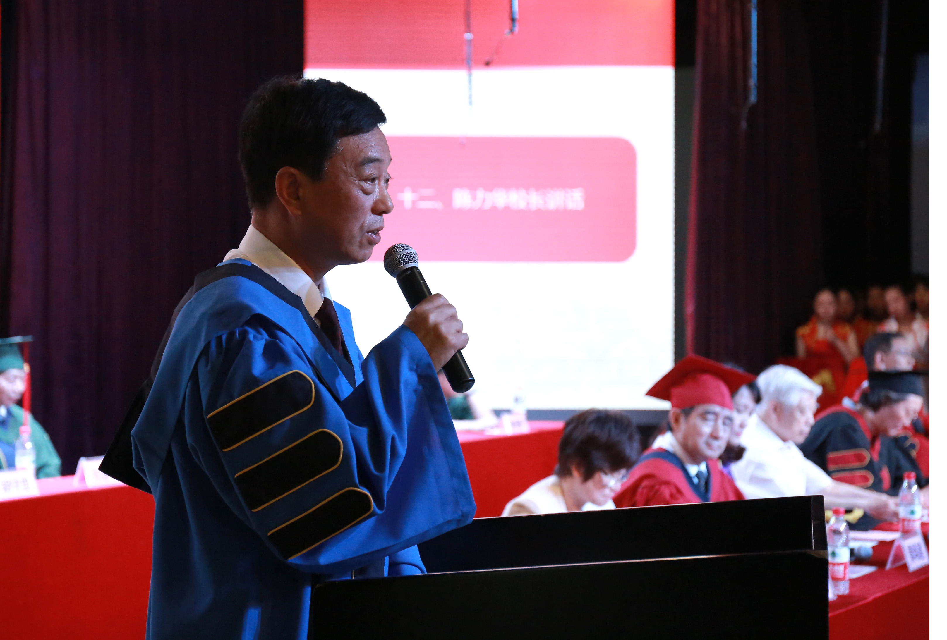 最后,校长陈力华向全体毕业生们作了重要讲话。陈校长对2017届毕业生历年来所取得的荣誉,做出了肯定,陈校长要求毕业生:走向社会要认真踏实做事,做有担当有责任的人;希望毕业生在人生旅途上志存高远,敢于担当!坚持建设祖国、服务人民的理想信念;坚持积极进取、乐观向上的人生态度;坚持正直负责、求真务实的优秀品格;坚持胸怀坦荡、淡泊名利的可贵品质。要求同学们坚定信念、坚守抱负、坚持奋斗!陈校长希望同学们要继续传承震旦精神,做崇尚科学的人;希望同学们常回家看看,做常怀感恩的人,他希望同学们要感恩帮助你的人、感恩关怀你的人、感恩鼓励你的人。
