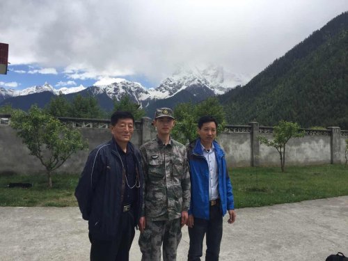 在返回林芝军分区驻地八一镇的路程中,慰问团无意得知我校经管学院15级学生王丰盛正在军分区某部参加集训,几经周折,我们终于见到参加报务员集训的王丰盛同学。他一看到我们来慰问的老师,习惯性地立正敬礼。在与王丰盛同学的交谈中,我们从这个20岁的大男孩身上感觉到了一种焕然一新的精神风貌,以及他们这个年纪少有的成熟稳重。孙兴强部长鼓励他发挥大学生士兵特长,同时注意身体,努力学习科学文化以及专业知识,退役返校继续完成学业。王丰盛同志非常感谢学校对他的关心,表示一定不辜负学校领导、老师的期望,在部队服从部队管理,严格接受训练,踏踏实实工作。