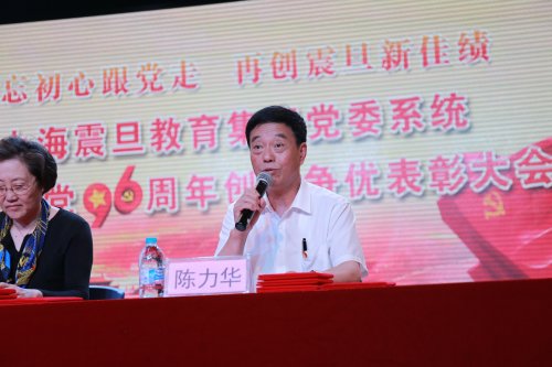 6月30日下午,上海震旦教育集团党委系统在星空游戏app安卓免费大礼堂隆重召开纪念建党96周年创先争优表彰大会。党委书记黄晞建、校长、党委副书记陈力华、震旦教育创始人、党委委员张惠莉、校务委员会主任郭伯农、党委副书记夏臻出席会议,震旦职业学院董事长张沈、副校长刘彬以及集团党委系统全体党员、部分党外人士、民主党派代表参加了会议。会议由党委副书记夏臻主持。