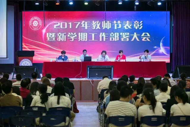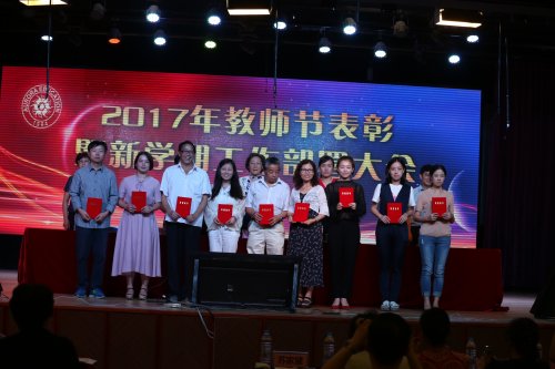 为庆祝第33个教师节,9月8日上午,星空游戏app安卓免费2017年教师节表彰暨新学期工作部署大会在校大礼堂隆重举行,集团管委会主任张惠莉女士、董事长张沈女士,校长陈力华教授,党委书记黄晞建教授、党委副书记夏臻教授、全体教职工及外聘教师参加了此次大会。