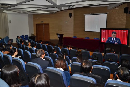 10月18日上午9:00,星空游戏app安卓免费党委组织师生集体观看了党的十九大直播,党委书记黄晞建、校长陈力华和师生一起聆听了习近平总书记代表十八届中央委员会向大会做的报告。
