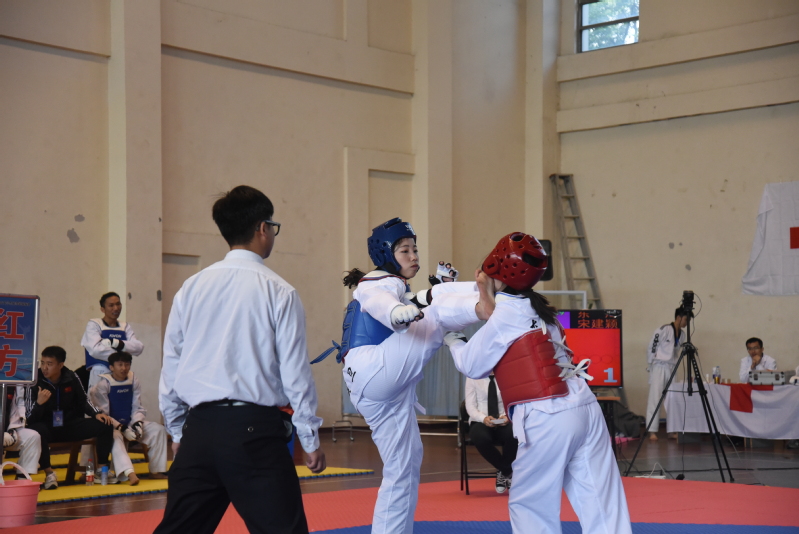 比赛中,震旦跆拳道队员