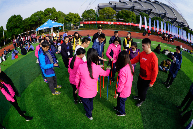 本届辅导员团队拓展活动由中共上海市教育卫生工作委员会、上海市教育委员会主办,上海工程技术大学承办,上海53所高校的1000余名辅导员参加了本次活动。市教卫工作党委副书记、市教卫副主任高德毅,教委德育处处长江耿绍宁,市学生德育发展中心主任任沙军等领导莅临现场,并做了重要讲话。活动共由“绳舞飞扬”、“气拔山河”、“不倒森林”、“一鼓作气”“坐地起身”五个项目组成。我校辅导员充分发挥团结拼搏的精神,凝心聚力,勇于挑战,出色地完成了每一个项目,彰显出震旦人强大的凝聚力和集体荣誉感,最终荣获团队拓展活动“三等奖 ”。