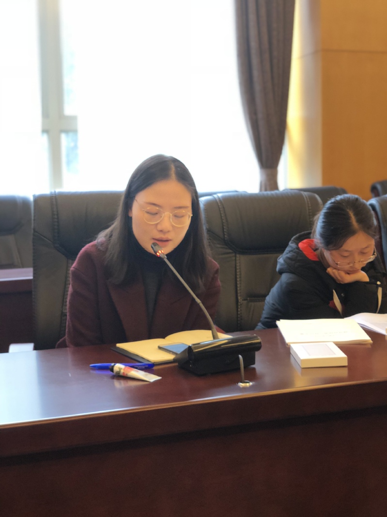 会议的第三项议程由学工部部长毛燕静汇报本年度学生工作、辅导员队伍建设以及年终考评情况。