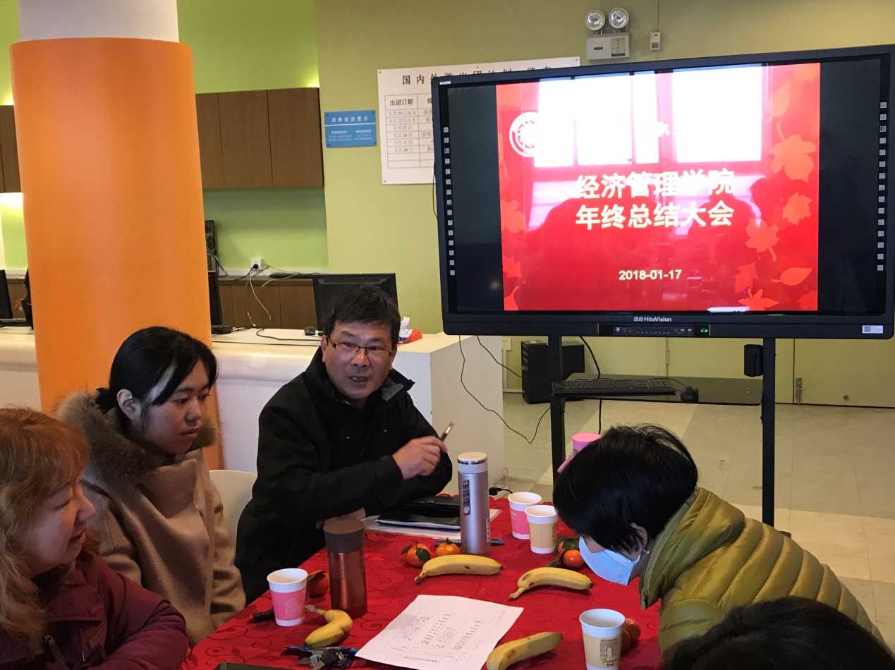 2018年1月18日,经管学院2017学年第一学期总结大会在经管学院六楼实训中心顺利召开。本次总结大会旨在总结学院一学期以来的工作情况,帮助老师们及时反思得失,并对下学期的工作做出展望。经管学院院长胡守忠教授、院长助理皮骏老师出席了本次总结大会。