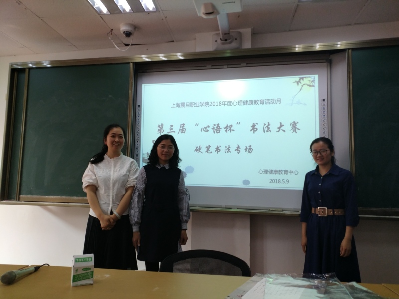 2018年5月9日,我校心理健康教育中心举办了2018年度大学生心理健康教育活动月之第三届“心语杯”书法大赛。来自6个二级学院的171位学生参加了硬笔书法专场,36位学生参加了软笔书法专场。心理健康教育中心武莹莹老师,团委副书记喻璐老师,二级学院心理辅导员杨予宁老师、梁甜老师、相萍萍老师到场参观指导。沈冰等6名天使之翼社团志愿者为大赛提供服务,保证大赛顺利进行。