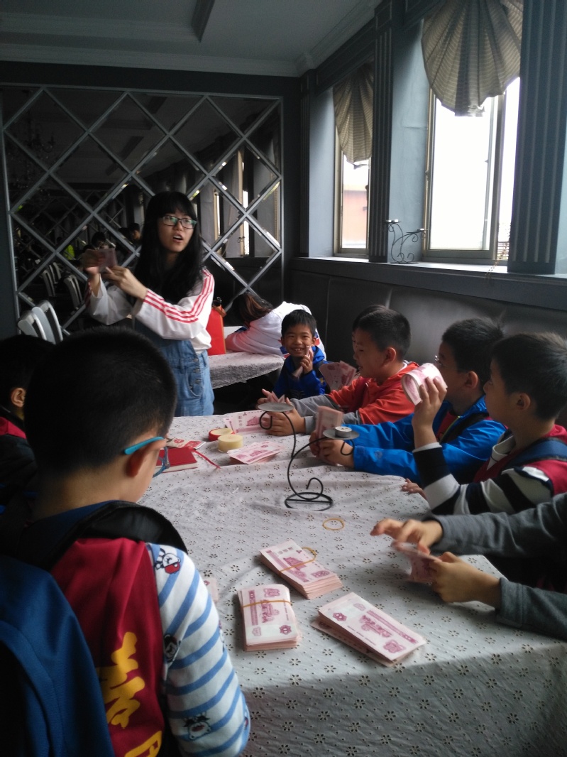 经济管理学院开展的在“点钞技术”是指导孩子们如何快速点钞,如何识别假币,非常实用。点钞是从拆把开始到扎把为止的一个连续、完整的过程,具体包括拆把持钞、清点、记数、墩齐、扎把、盖章等环节。点钞技术是财务工作人员必备的技能,通过本次体验孩子们可以学习鉴定钞票和正确清点钞票的小技巧,了解理财的基本知识,树立正确的金钱观。