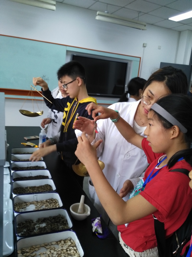 在中药传统技术项目中,孩子们学习如何识别常见中药,如何称量,并按照老师的指导自己制作防蚊香包带回家送给家人。这一项目让孩子们感受到祖国传统医学的魅力,也契合了我国传统节日“端午节”的主题,是上海市唯一的中药体验项目。