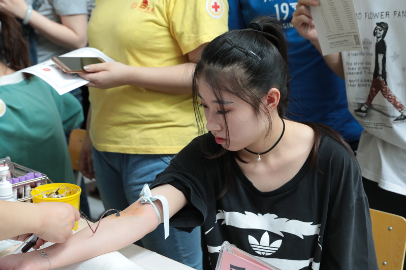 不仅有同学们的积极参与,我校青年教师也积极投身于此次活动中来,来自音乐舞蹈中心的李灵悰老师和经济管理学院的鹿群老师也撸起袖子志愿加入中华骨髓库,成为其中的一员。宝山红十字会金培生副会长表示:震旦学院自2012年开展造血干细胞志愿者招募活动以来,今年已经是第七个年头了,震旦师生为这项活动付出了很大的努力,在上海高校中起到了很好的带动作用,希望震旦学院一如既往地在学校领导的支持和带动下,把这项活动办出品牌、办出特色。