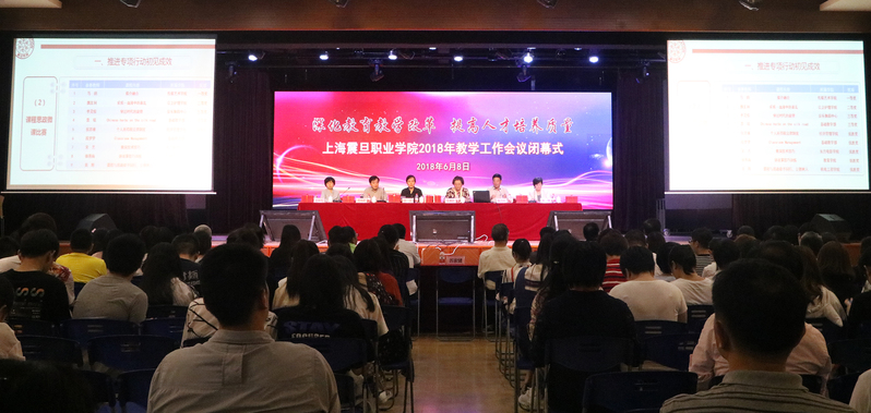 2018年6月8号下午1点,我校2018年教学工作会议闭幕会在大礼堂召开。震旦教育发展基金会理事长张惠莉、董事长张沈、校长陈力华、党委书记黄晞建、党委副书记夏臻、副校长王纯玉以及全体教师、学生干部参加了此次会议。会议由党委书记黄晞建主持。
