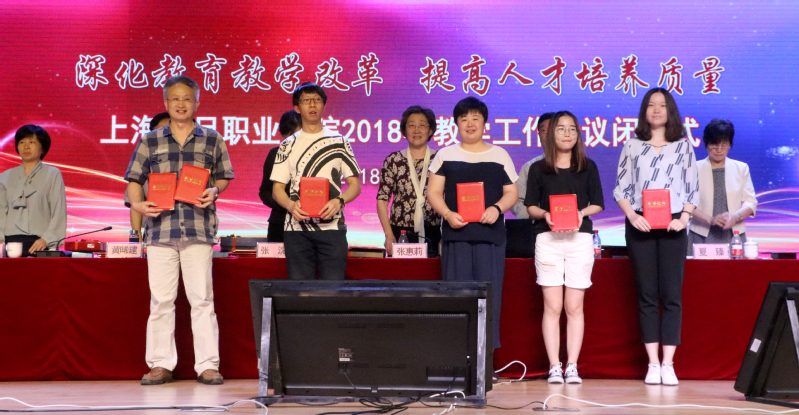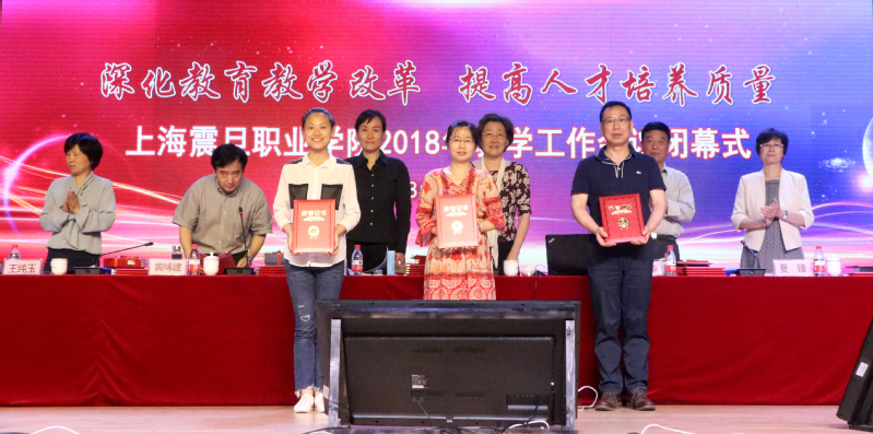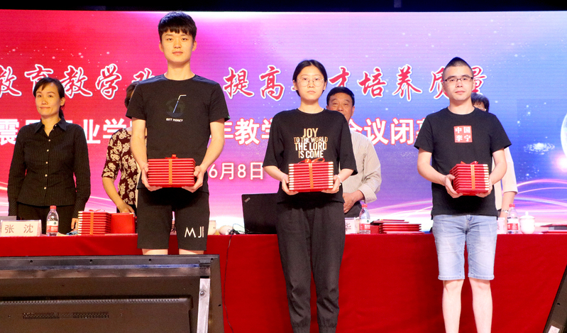 随后,王纯玉副校长宣读《关于表彰2018年各类职业技能竞赛集体和个人的决定》;夏臻副书记宣读了《关于2018年教学质量月的表彰决定》,表彰教师之星、教学成果展示以及“课程思政微课”教学比赛中获奖的教师和学院;张沈董事长宣读了2018年教师职务评聘通知并颁发证书。