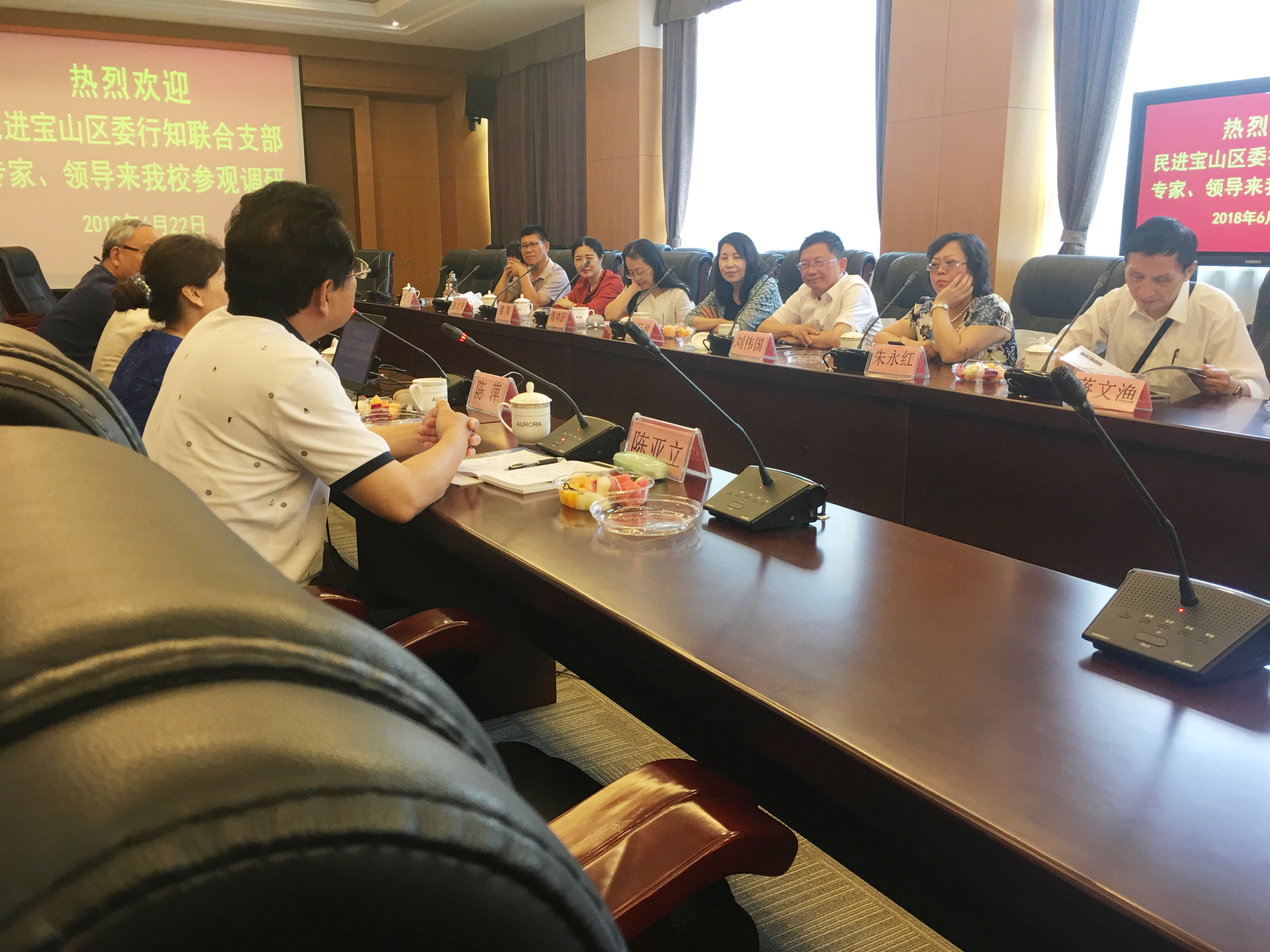 2018年6月22日上午,由民进宝山区委原主委、区政府教育督导室原主任、民进中央原委员刘伟国带领的民进宝山区委行知联合支部来我校实地考察调研。民进宝山区委行知联合支部委员、我校机电工程学院院长助理陈萍主持调研会,校党委副书记夏臻出席并讲话,校调研员曹士勋、机电工程学院副院长陈亚立陪同调研。