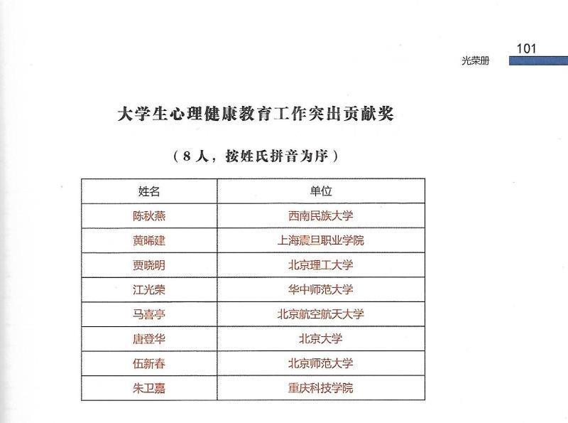 2018年6月20-22日在吉林大学举行的第十三届全国大学生心理健康教育与咨询学术交流会上,我校党委书记黄晞建教授,因其多年来对大学生心理健康教育做出的杰出贡献,被中国心理卫生协会大学生心理咨询专业委员会评为“突出贡献奖”!据悉,这次大会共授予大学生心理健康教育工作突出贡献奖8人,黄晞建教授是唯一来自民办高校的获得者。