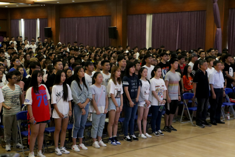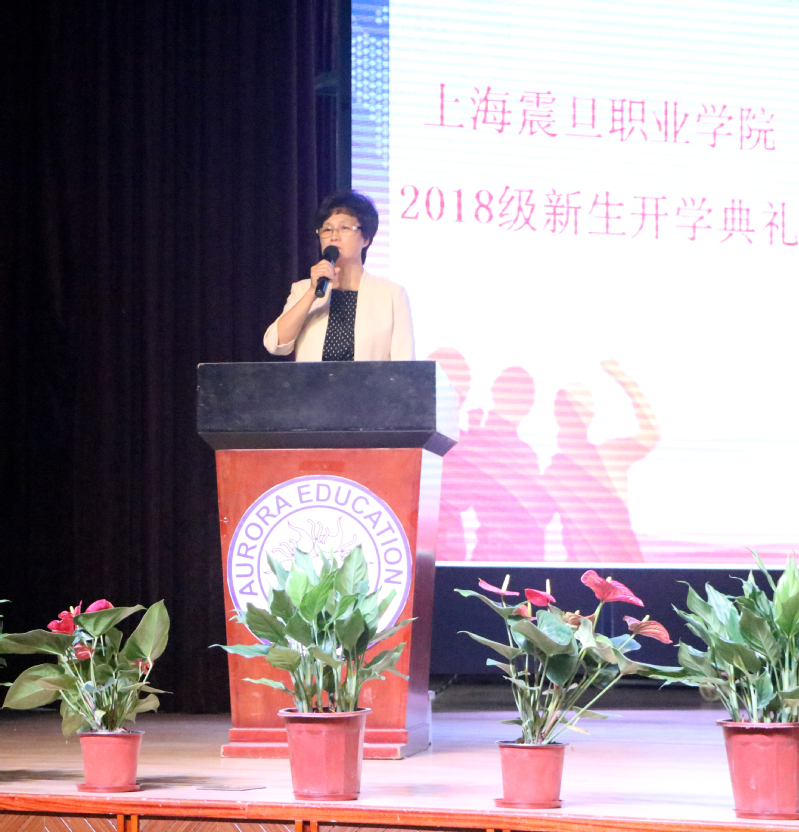 最后,震旦教育集团创始人张惠莉讲话。向全体新生介绍了震旦的发展历史,代表震旦教育大家庭欢迎来自全国25个省市的1500余名新生。她肯定了新生们选择上海、选择震旦这一决定。张理事长希望新生们能树立崇高的目标、培养崇高的品格,同时学会合理分配时间,努力学习,成为“爱国、励志、求真、力行”的新时代好青年。
