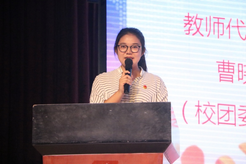 在庄严的国歌声中,2018级新生开学典礼正式开始。典礼伊始,教师代表、校团委书记曹晓莉代表全体教职员工欢迎2018级新生的到来。作为一名一线学生工作者,曹晓莉老师从自己的切身感悟出发,希望新生能尽快适应大学生活,尽快树立专业思想,培养专业兴趣;尽快养成自主学习的能力,不断提高自己的综合素养。曹晓莉老师代表全体教师向全体新生做出承诺:以敬业务实的工作精神开拓进取,做学生的表率,引导每一位青年大学生扣好人生第一粒扣子。